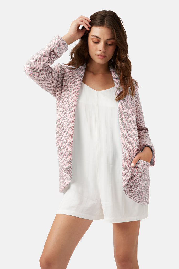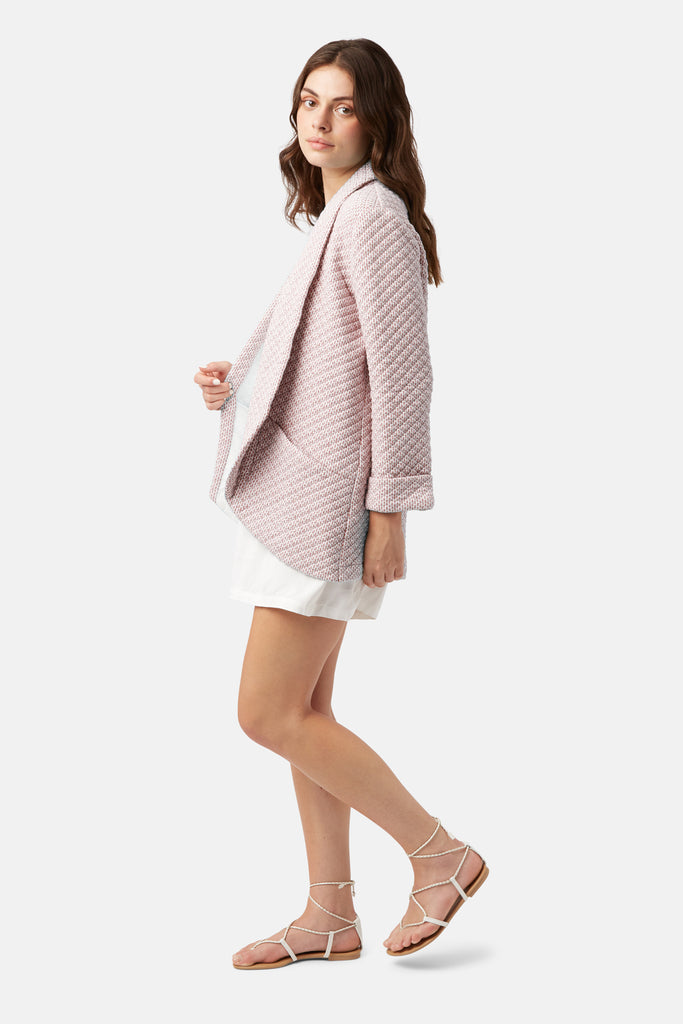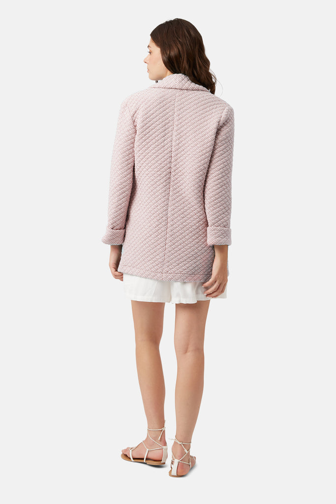 The Traffic People Boyfriend jacket has been given an upgrade in this padded Cry Me a River quilted fabric available in 3 beautiful pastel colours. Boyfriend length with a full length curved collar and front pockets.