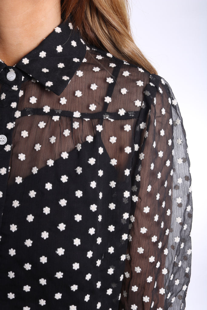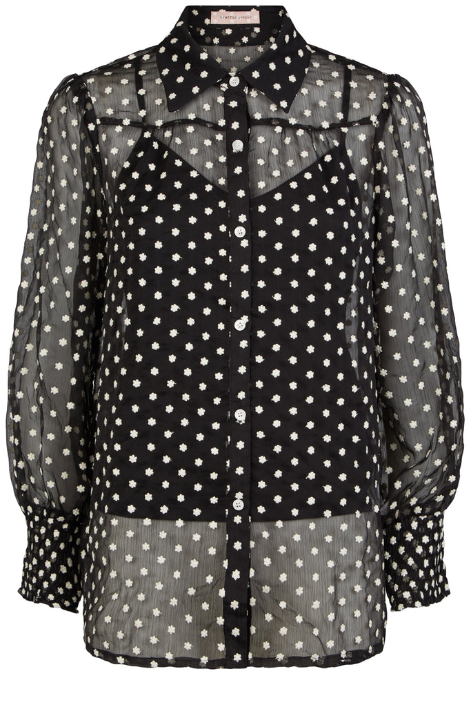 Elevate your style with the Mellow Madness Shirt. Embroidered throughout with a delicate floral in a classic shirt shape, this shirt is finished off with a large cuff at the sleeves.