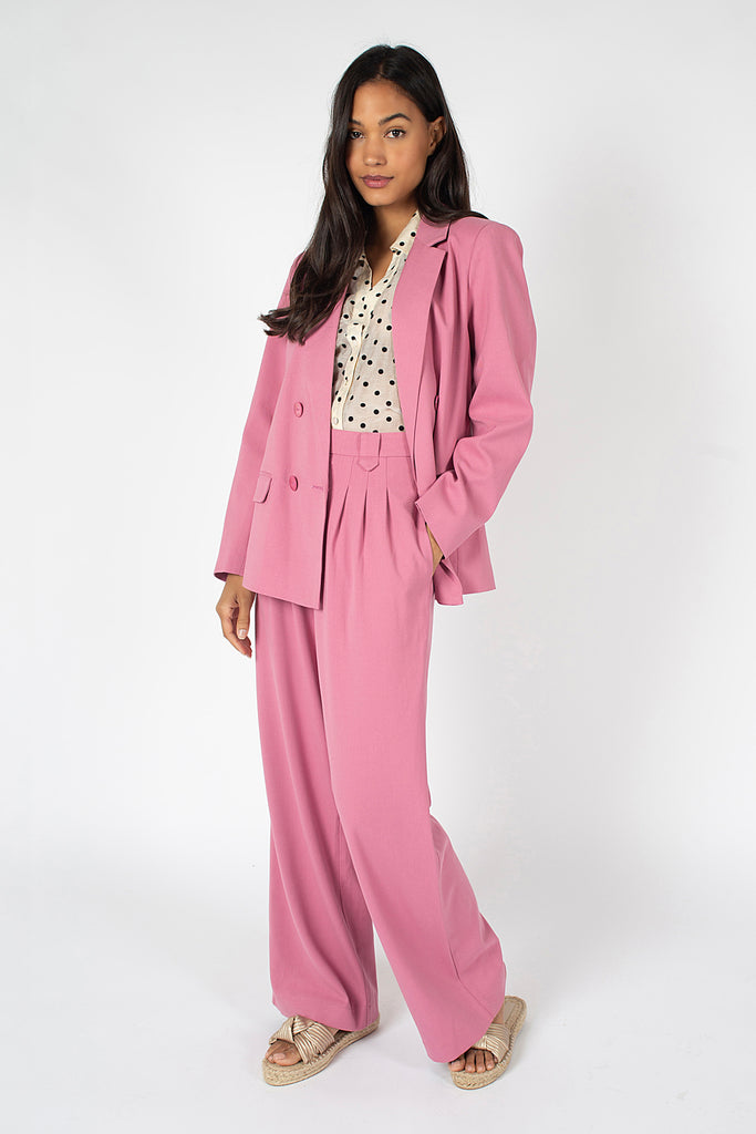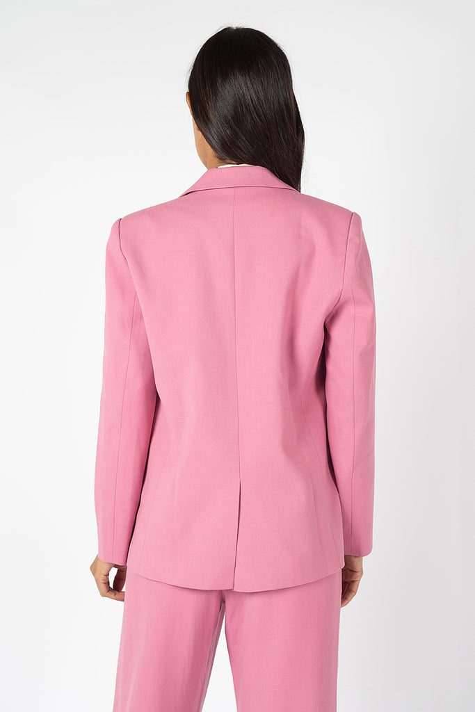 The Ava Rose jacket has the perfect casual, relaxed fit that makes it easy to wear for any occasion. Featured in this stunning pink shade, it adds the perfect pop of colour to any outfit. Pair with our matching The Downfall Betty Trousers to complete the look. 55% Polyester 35% Recycled Fabric 6% Wool 4% Elastane.