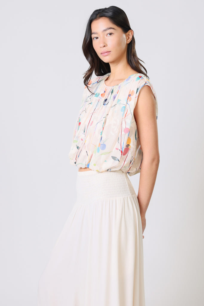 Soon to be a staple in your summer wardrobe, the Falls Top gives that perfect casual summer vibe. It has a bubble, sleeveless, boat neck fit, with a beautifully pleated neckline to create the most flattering texture. The lightweight blended fabric keeps the fit loose and relaxed - perfect for those hot summer days. So easy to style in this gorgeous white and multicolour floral print. Just pair with our matching Aurora Skirt for the perfect summer holiday outfit.