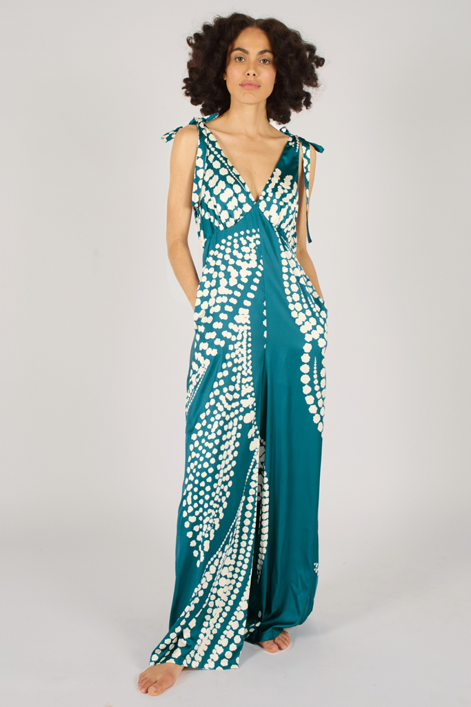 The Gracie Jumpsuit is the perfect summer staple, especially in the unique blue and white botanical print of our The Odes Revisited fabric. Featuring a stunning wide leg fit, with gathering on the bust and tie shoulder straps. The perfect jumpsuit to dress up or down to suit all occasions.