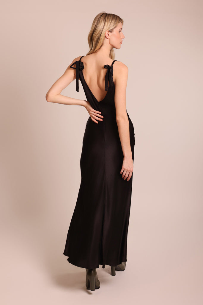 Our Grace Dress is the perfect Christmas party outfit - a stunning bias cut maxi dress, with a flattering deep V-neck and empire line bust. The tie straps can be adjusted to suit your style. It looks so elegant in this luxurious black fabric. Just dress up with heels for a stunning festive party outfit.