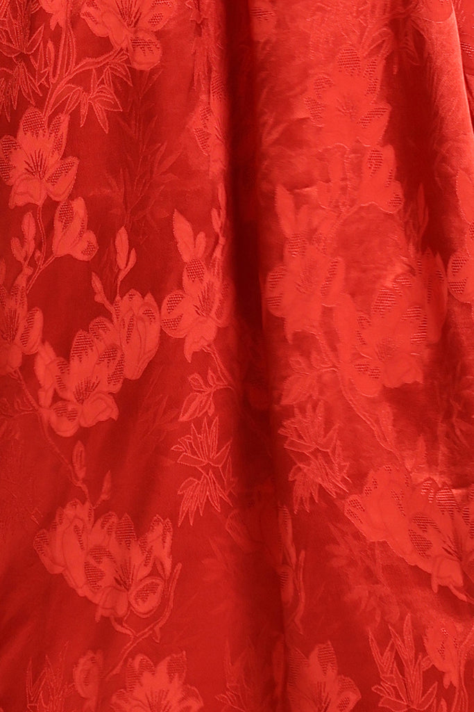The Dally dress is a classic long sleeve button front shirt dress, with a tie around the waist that helps to give the most flattering silhouette. It looks beautiful in this lux rust red floral satin style fabric, which is soft but structured. Dress up with heels or keep it casual with some knee high boots.