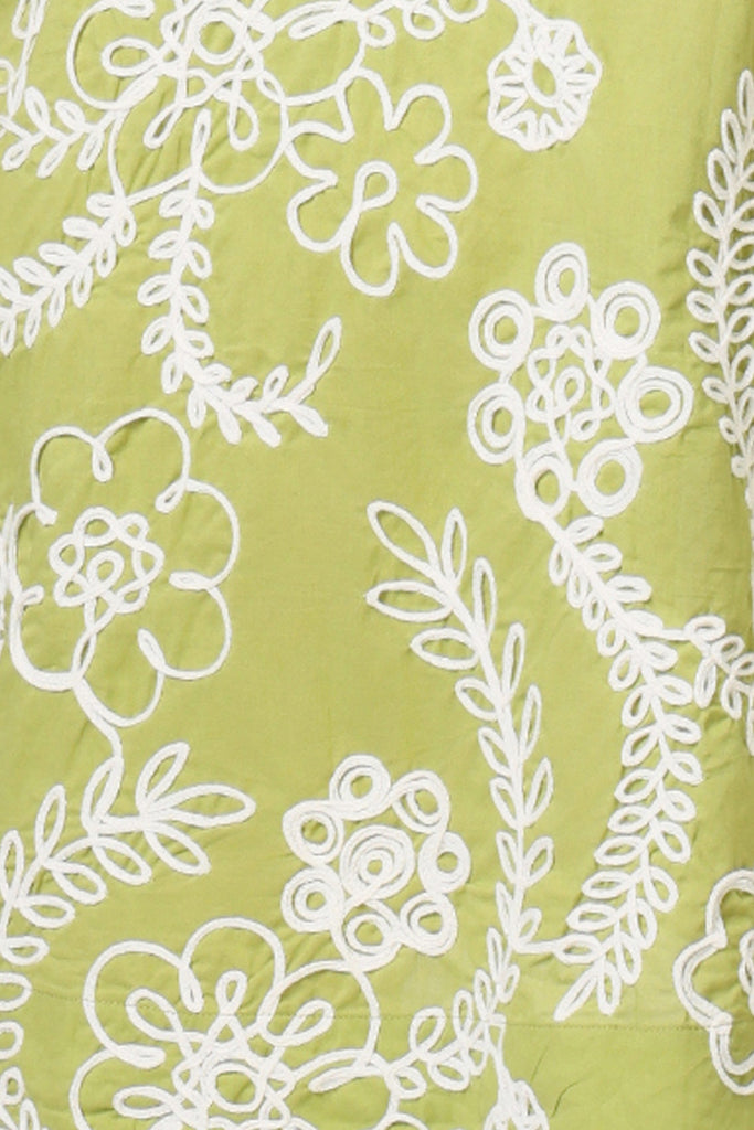 The Valerie Dress is a classic sleeveless, A-Line mini dress, with a flattering deep V-Neck front and back. Featuring the essential side seam pockets. It's the perfect lightweight, slip on mini dress to include in your summer holiday suitcase. With effortless versatility, it can easily be dressed up or down to suit any occasion. Add some colour to your wardrobe with this green and white floral embroidered cotton.