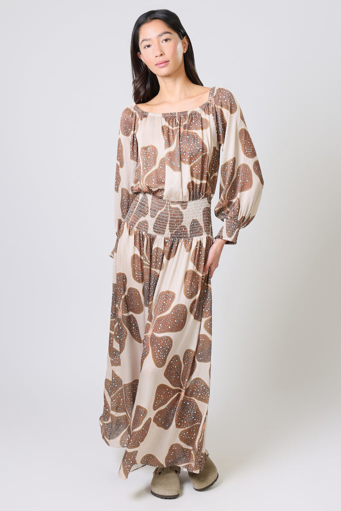 The Bloom dress is a stunning free flowing midi dress, which has a wide off the shoulder neckline and 3/4 billow sleeves with elasticated cuffs to give a relaxed silhouette. The wide elasticated smock waistband helps to give the most comfortable, but chic fit. Just slip it on and pair with some sandals for a stunning summer holiday outfit.