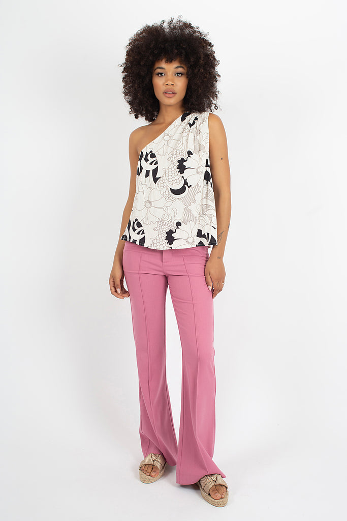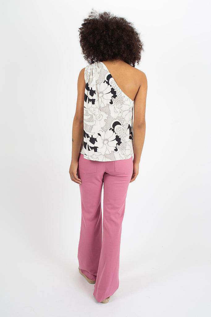 The Lola top is is a beautiful summer piece in this black and white floral print and flattering one sleeve silhouette. Pair with our matching skirt to complete the outfit. Made with sustainable materials. 55% Linen 45% Cotton.