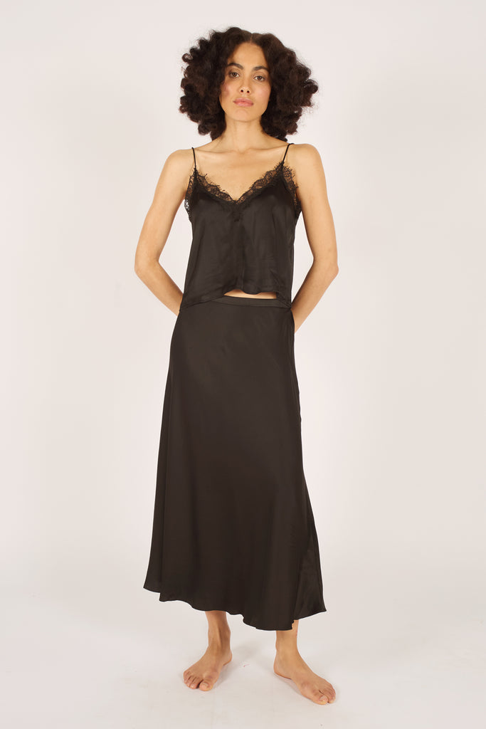 The Solitude Skirt is the perfect versatile midi skirt to add to your summer wardrobe. A flattering fit in this bias cut, with an elasticated waistband at the back for added comfort. So easy to style however you like.