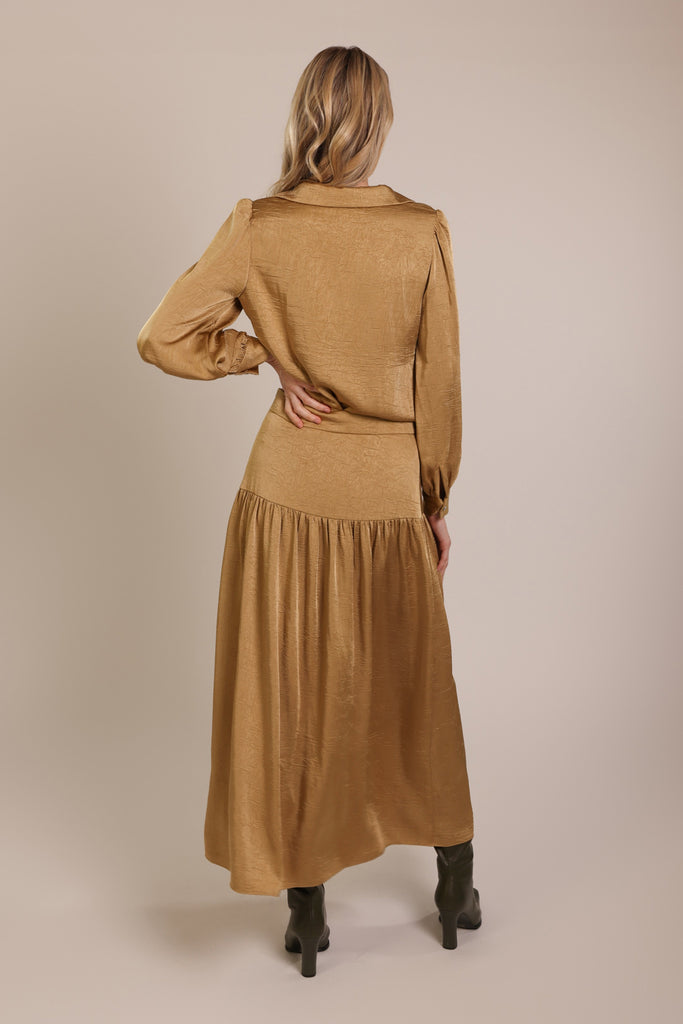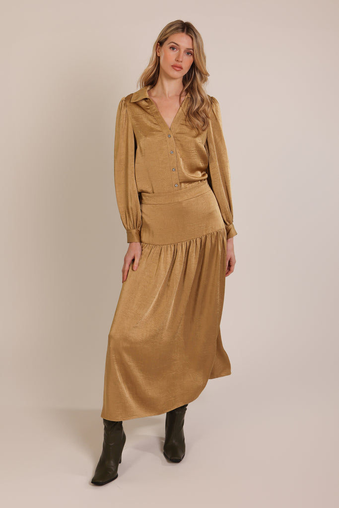 The Frida Skirt is sure to become a staple in your winter wardrobe, which will carry you through perfectly to Spring. It has a flattering dropped waist detail which looks all the more elegant in this soft gold fabric. Just style with boots or heels for a stunning festive party outfit.