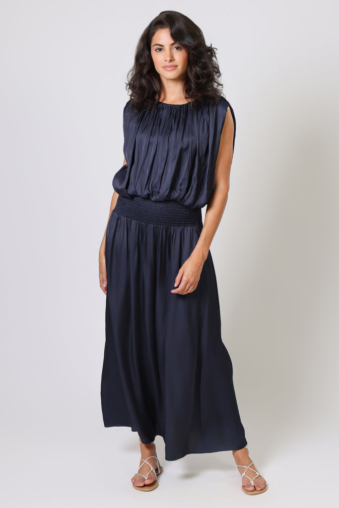 The Aurora Skirt has a classic A-Line shape, with an extra-wide elastic smocked waistband which is designed to allow for a low or high waist fit. Featuring side seam pockets. A stunning and versatile maxi skirt to add to your summer wardrobe. So easy to style if this classic navy blue shade. Just pair with our matching Falls Top for the full summer outfit.