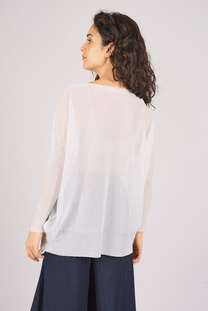 This knitted, long sleeve sheer top is the perfect layering piece to add to your summer wardrobe. Super lightweight and breezy, it's works great as a beach cover-up. So easy to style in this simple white.